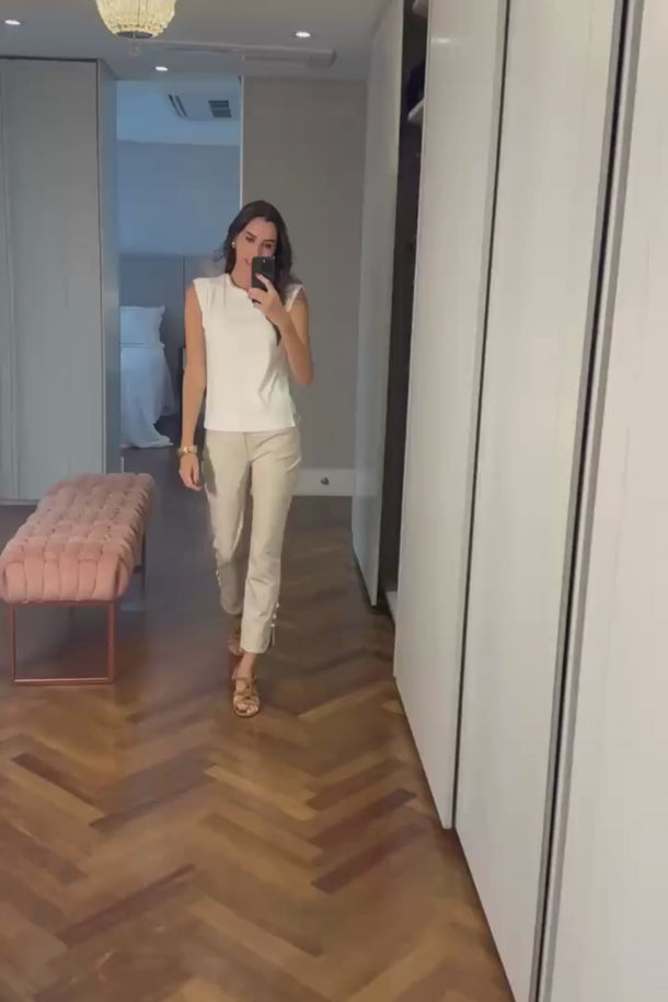 Blusa Off White com gola baixa reta, de modelagem reta e caimento levemente amplo no corpo. Não é justa nem excessivamente fluida, garantindo conforto e elegância na medida certa. Versátil e atemporal