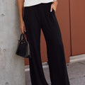 Calça em tecido leve de alfaiataria com elastano estampa risca de giz na cor preto. Modelagem mais ajustada no quadril e mais solta nas pernas, cintura alta e cós estruturado. Possui pregas frontais, bolso faca nas laterais e bolso traseiro de alfaiataria. Fechamento por zíper e colchete interno na frente.