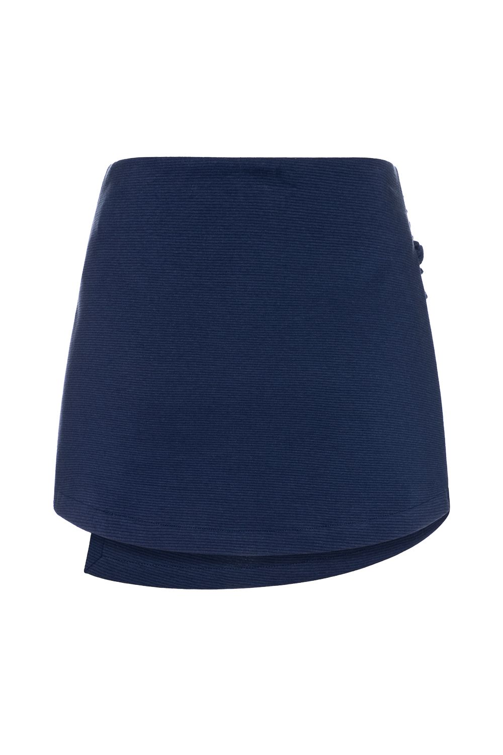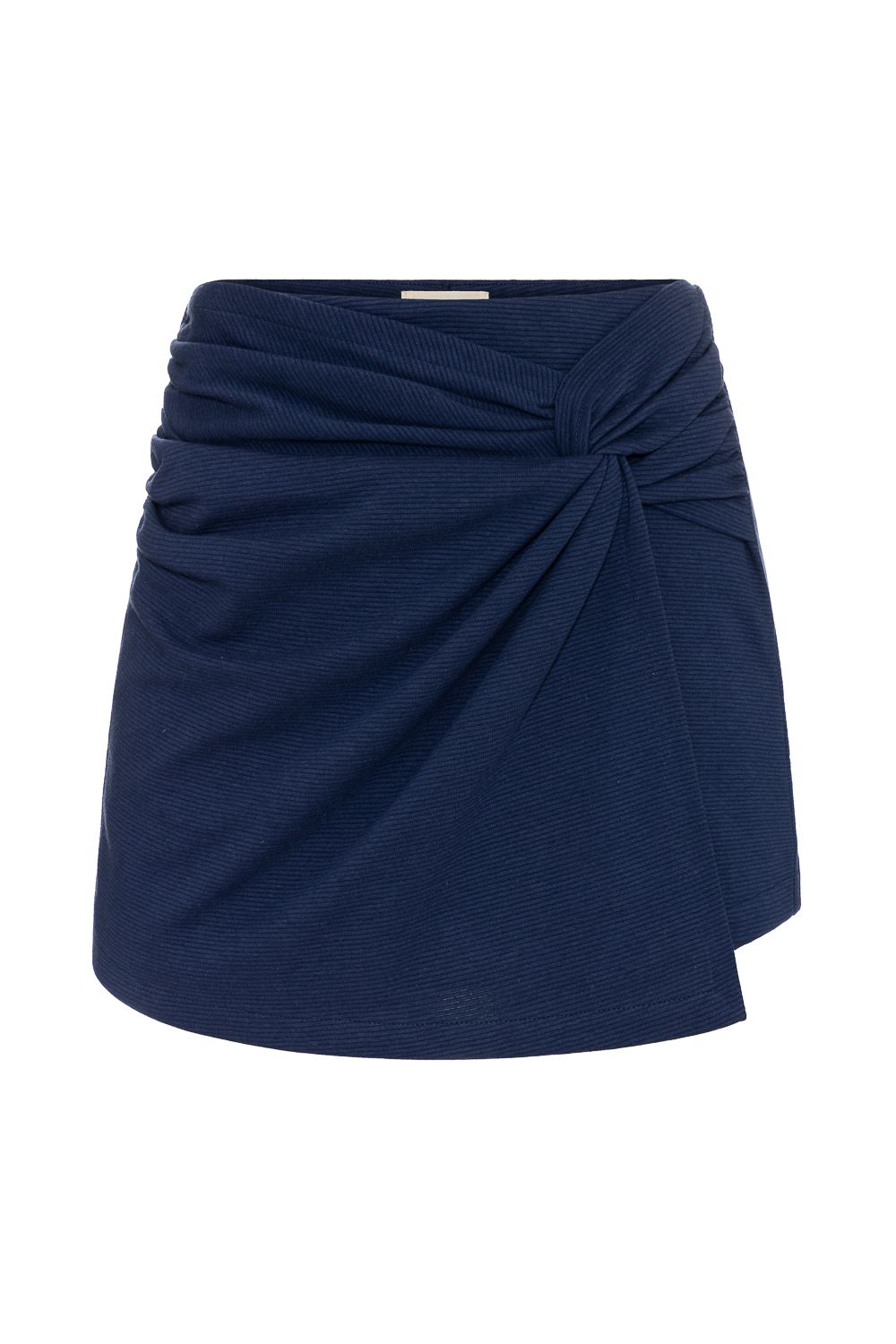 Shorts Saia curto na cor azul marinho. Modelagem mais ajustada ao corpo no caimento, com um detalhe entrelaçado em tecido formando uma delicada sobreposição na frente garantindo conforto e elegância . Cintura alta e uma pala com elástico. Modelagem menor, então caso vista P funciona pegar P ou M , assim em diante