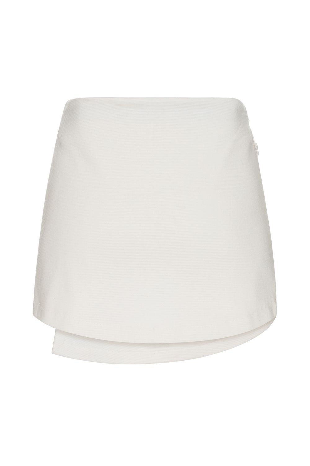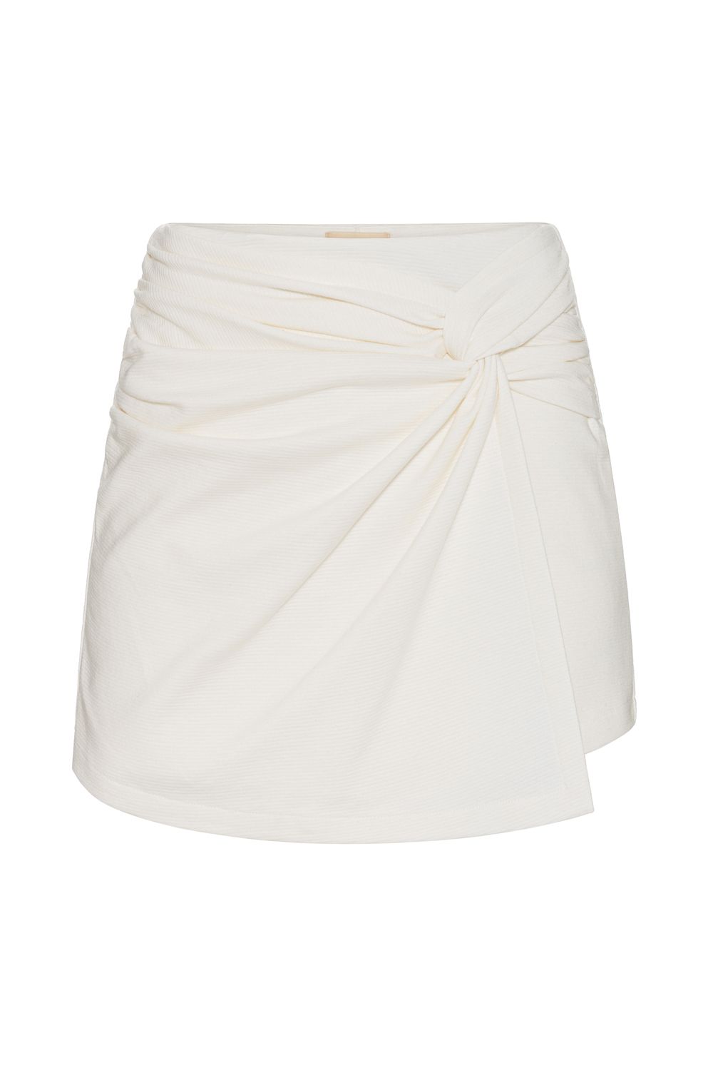 Shorts Saia curto na cor off white. Modelagem mais ajustada ao corpo no caimento, com um detalhe entrelaçado em tecido formando uma delicada sobreposição na frente garantindo conforto e elegância . Cintura alta e uma pala com elástico. Modelagem menor, então caso vista P funciona pegar P ou M , assim em diante